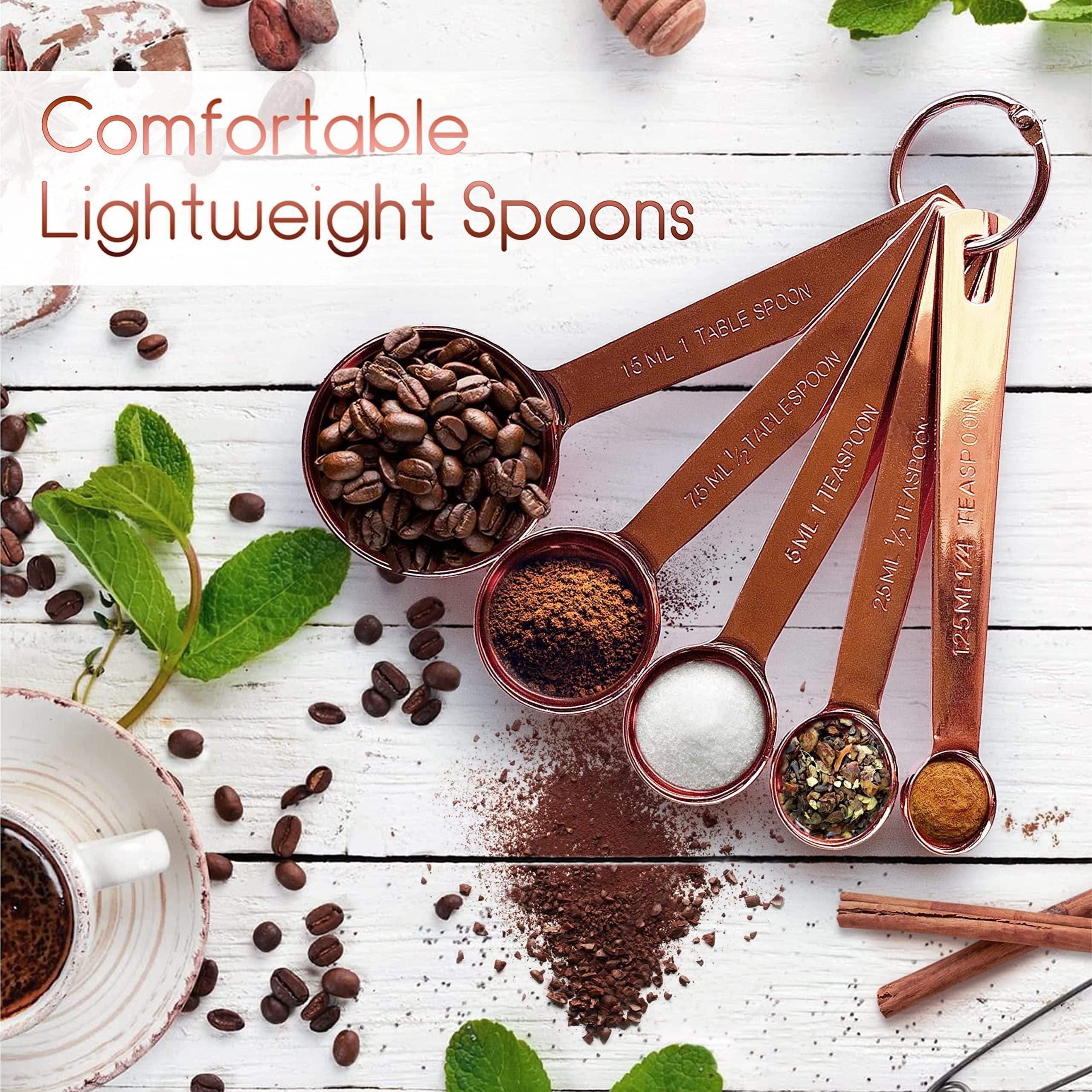 4.does not rust - metal measuring cups and spoons set made of stainless steel with copper finish, so no rust, no break, the edges are smooth