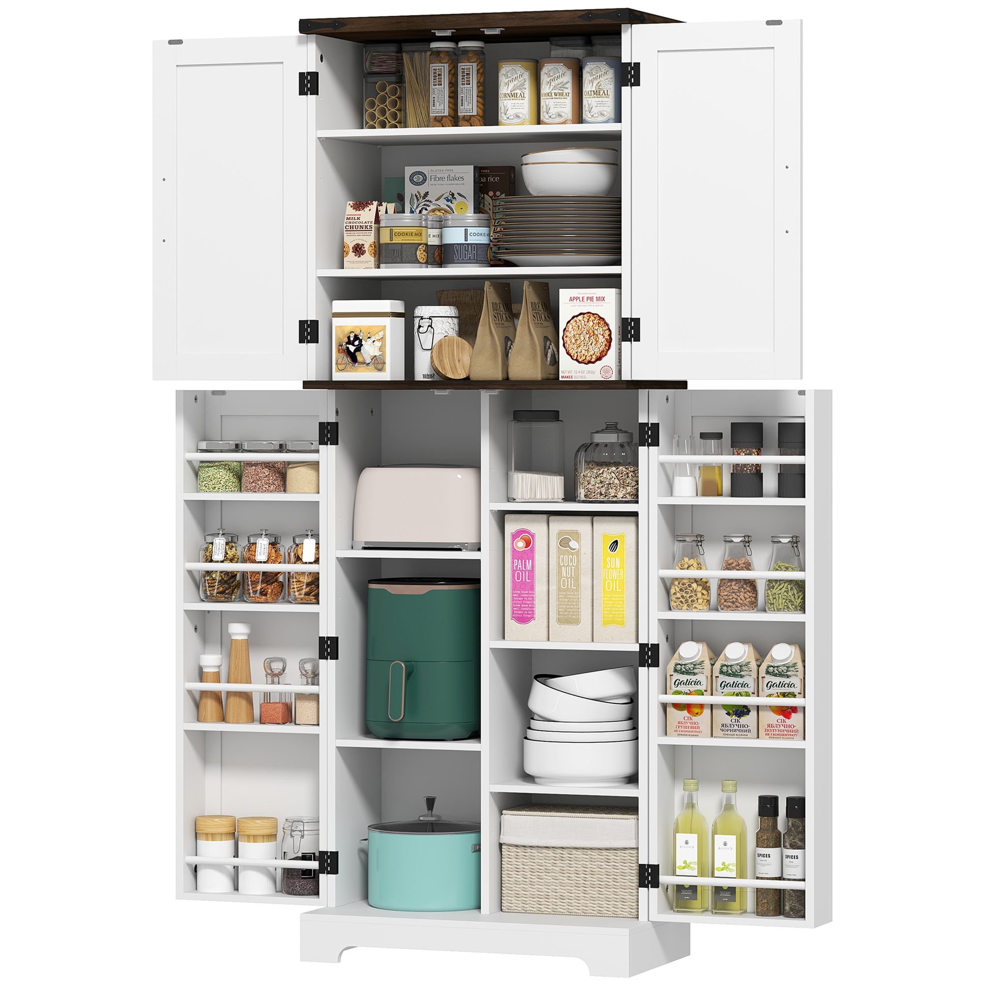 64" Tall Kitchen Pantry Cabinet with Spice Racks and Adjustable Shelves, White 64" Tall Kitchen Pantry Cabinet with Spice Racks and Adjustable Shelves, White 64" Tall Kitchen Pantry Cabinet with Spice Racks and Adjustable Shelves, White