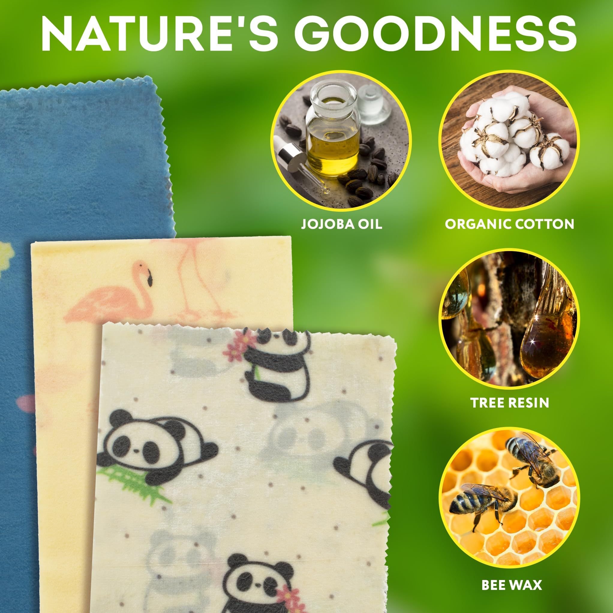 1.Enjoy the Versatility of 3-Pack of Beeswax Food Wraps, available in small, medium, and large sizes. Reusable food wraps are crafted from 100% natural beeswax, organic cotton, tree resin, and jojoba oil, provide a long-lasting touch to food items.