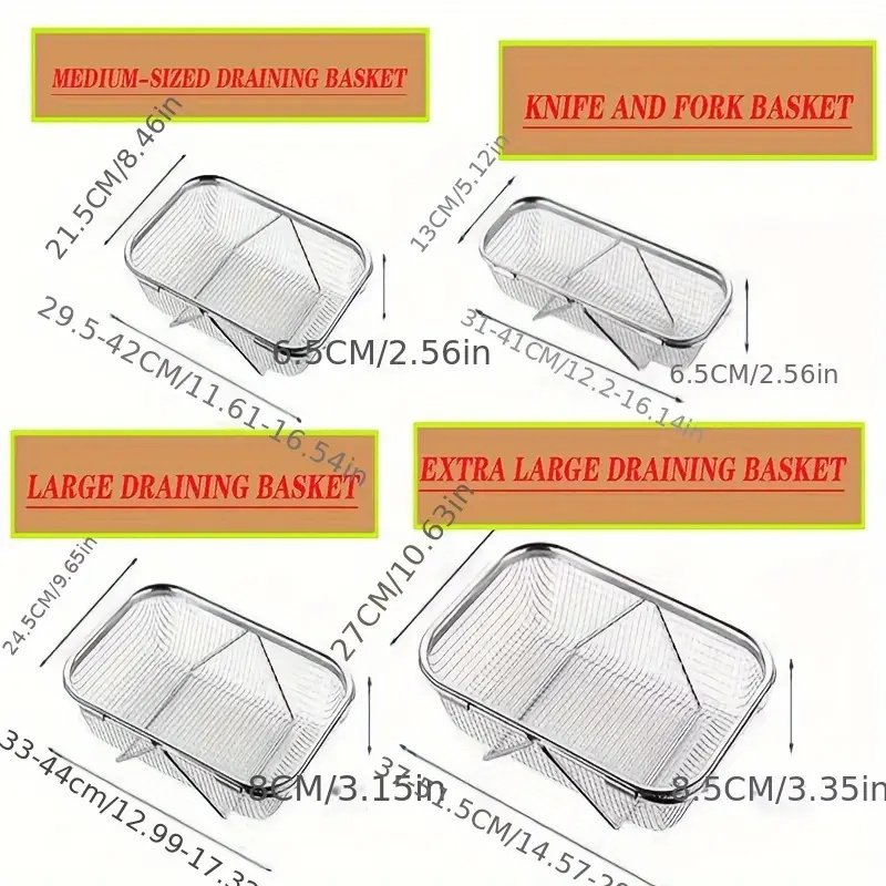 Scalable stainless steel kitchen drain basket - multifunctional dish and utensil storage rack, space saving and easy to clean