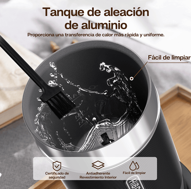 The electric milk frother has a non-stick coating, which is easy to clean. Just rinse with water and wipe with a cloth. The hands-free screw-free body design increases stability and comfort. The double-layer structure of aluminum alloy inner layer and ABS non-slip outer layer protects your hands from burns.